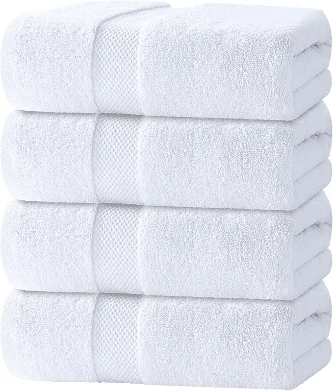 Opulent Comfort, Superior Strength: Experience the ultra-soft, smooth texture of our fluffy white towels luxury, designed for longevity. The meticulously crafted, double-stitched edges enhance durability and prevent fraying, even with frequent washing